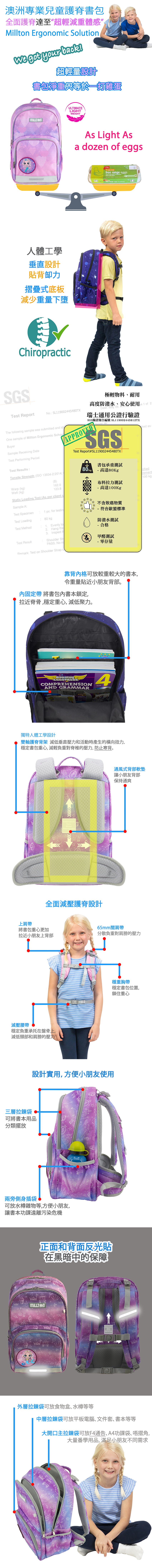- 書包承重高達80Kg,絕對滿足小學生的需求。